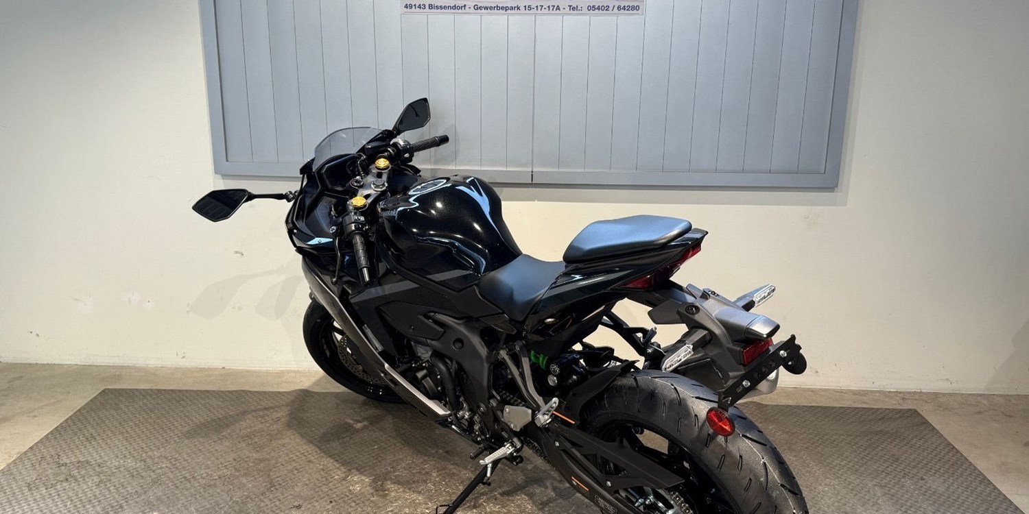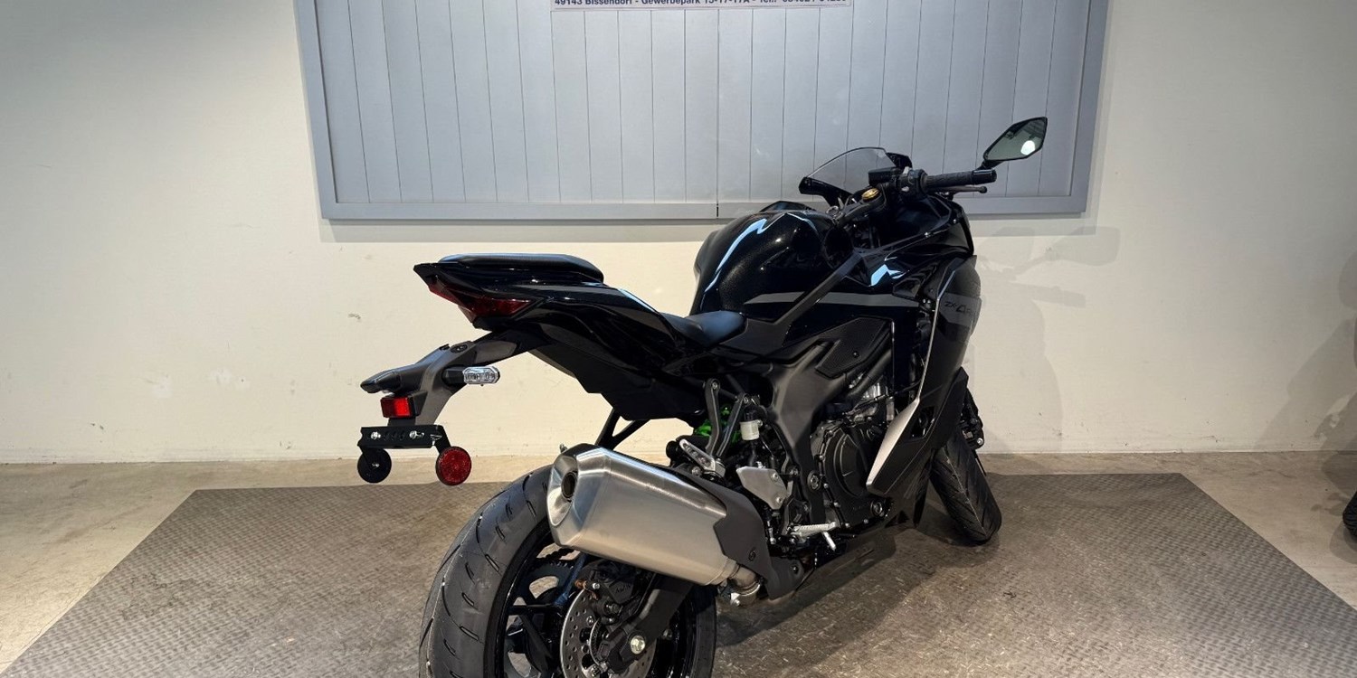 Mit der Ninja ZX-4RR wurde eine spektakuläre 400-cm-Revolution eingeläutet. Ihr Reihenmotor mit vier Zylindern erreicht nie dagewesene 57 kW (77 PS). Das leichte und ausgewogene Handling, verbunden mit perfekt abgestimmter Motorleistung, macht die Ninja ZX-4RR zu einem Leistungssportler.