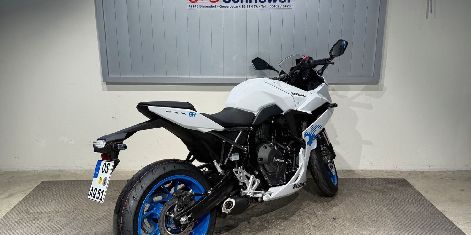 Seit über 40 Jahren steht die Suzuki R-Reihe für Innovation und Spitzenleistung. Die neue GSX-8R besticht durch ihr messerscharfes Design und einen der besten Parallel-Twins seiner Art. Das Fahrwerk setzt neue Maßstäbe und lädt sowohl zu sportlichen Sprints auf der Rennstrecke als auch zu komfortablen Fahrten im Alltag ein.